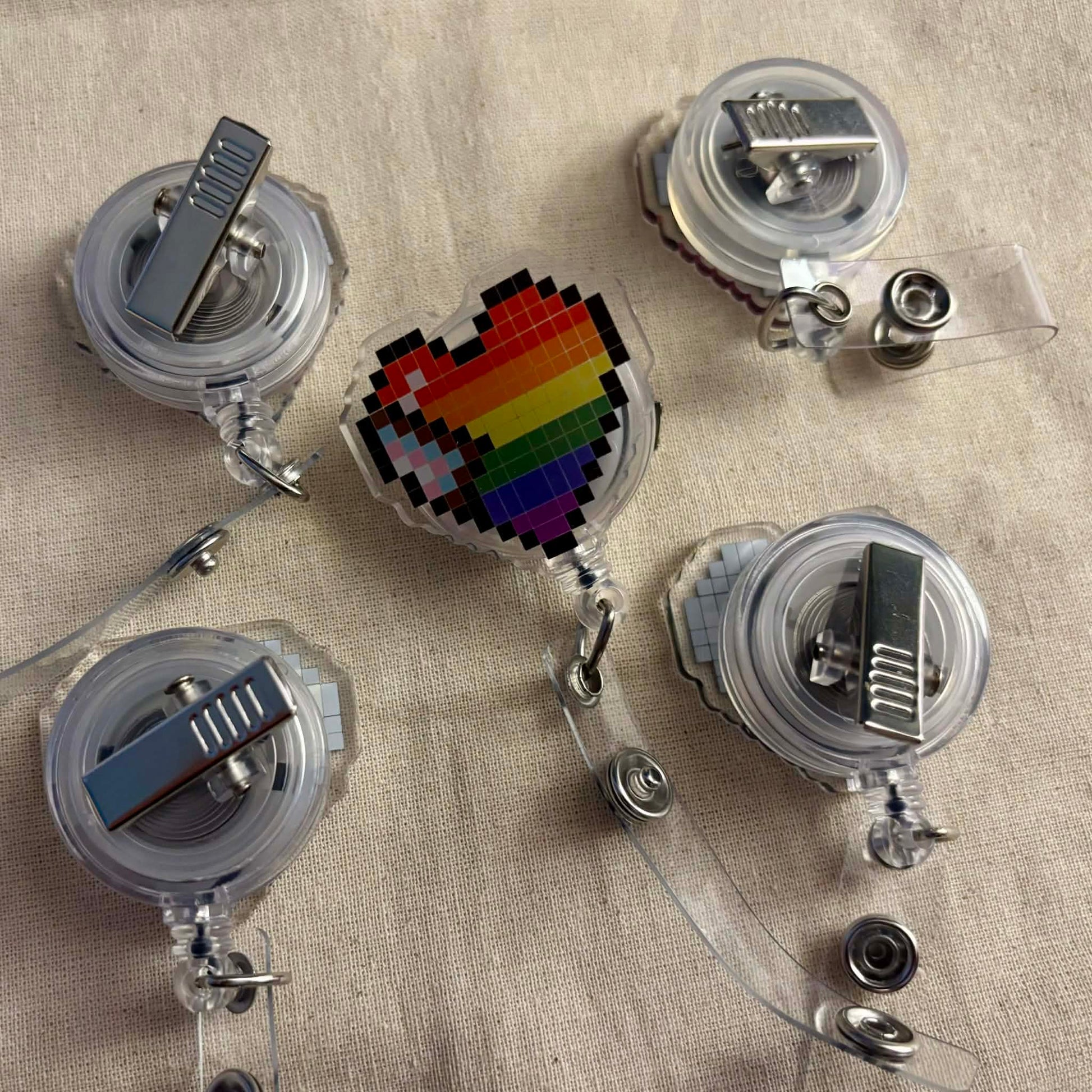 - Design: The badge reel is adorned with a rainbow heart design, adding a vibrant and inclusive touch.